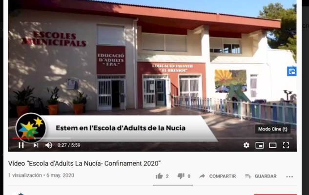 L’Escola d’Adults de La Nucia ha publicado un vídeo para dar ánimos y esperanzas a toda su “comunidad educativa” durante la “Crisis Sanitaria del COVID-19”. En este video han participado los profesores y alumnos de este centro educativo municipal de La Nucía y la concejalía de Educación. En él se trata de dar fuerzas y ánimos para seguir estudiando “desde casa” durante este “Estado de Alarma”. El video se puede ver en el canal de youtube de LaNuciaTV:
