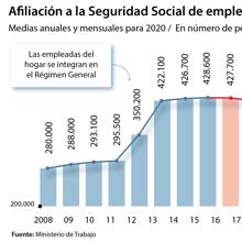 3. Las empleadas de hogar que cotizan siguen en caída libre y sin cobrar ni un euro. El ministro de Seguridad Social, José Luis Escrivá, reconoció el pasado abril el retraso de un mes en los pagos de las ayudas prometidas por la pandemia a 20.000 empleadas del hogar. Nada ha cambiado desde entonces, salvo que son ya 28.000 las trabajadoras que no han percibido ni un solo euro desde hace más de dos meses. El servicio de empleo argumenta que son problemas de gestión lo que está impidiendo pagar el subsidio prometido a uno de los colectivos más vulnerables del mercado laboral que el Ejecutivo de coalición se comprometió a defender como parte destacada del «escudo social» frente a la crisis. El subsidio comprometido es equivalente al 70% de su base reguladora y compatible con otras actividades siempre que no se supere el salario mínimo (950 euros mensuales).