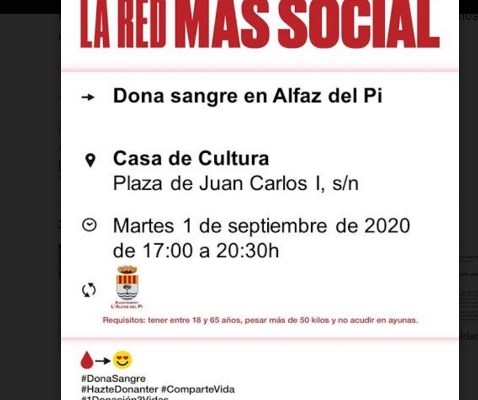 - El próximo martes podemos ser solidarios y donar sangre en l’Alfàs del Pi