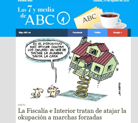 | ABC – Las 7 y media <las730@info.abc.es> Versión webSábado, 29 de agosto de 2020 Siga ABC enFacebookTwitterGoogle +ESPAÑALa Fiscalía e Interior tratan de atajar la okupación a marchas forzadasENTREVISTA CON TEODORO GARCÍA EGEA«De Cayetana diría que hay que trabajar pensando en el equipo»SOCIEDADAsí será el primer ensayo contra el Covid en España: «Vacunaremos a todos entre el 14 y el 22 de septiembre»OPINIÓN«Ministros prescindibles», por Juan Carlos GirautaINDEPENDENTISMOERC pide cambiar el Tratado de la UE para meter el catalán como lengua oficialFC BARCELONAMessi tiende la mano y Bartomeu se enrocaGENTERania de Jordania, luces y sombras de una reina «perfecta»… Y LA MEDIAAsí contó Goebbles a los nazis cómo transcurría la Guerra Civil: «Franco no avanza. ¿Es el hombre?» |