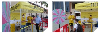 Ayer por la tarde una carpa identificativa con el “Reto del Reciclaje” se instaló en la entrada del Pabellón de la Ciutat Esportiva Camilo Cano. Tod@s l@s nucier@s que se acercaron a esta carpa informativa participaron en diferentes actividades como la “ruleta del reciclaje” y recibieron un pequeño regalo, para contribuir a tener un municipio más sostenible. En la carpa resolvieron todas las dudas acerca de cómo reciclar correctamente todos los envases y en qué contenedor depositar cada uno. Ciudadanos de todas las edades visitaron esta carpa del “Reto del Reciclaje”, cumpliendo con las medidas de distanciamiento social y prevención.