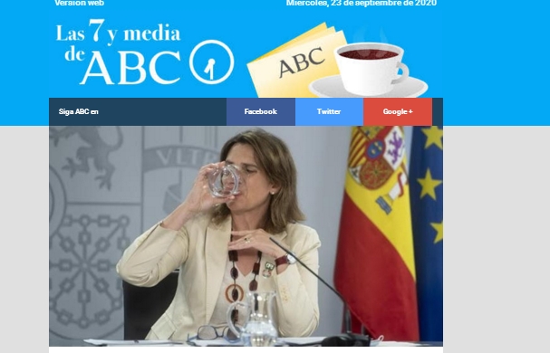 Imprimir todoEn una ventana nuevaABC – Las 7 y media <   Versión webMiércoles, 23 de septiembre de 2020   Siga ABC enFacebookTwitterGoogle +ESPAÑALa ministra Ribera dirigió el fallido plan de Isofotón subvencionado con 8,3 millones por el Gobierno andaluzLOCALLas nuevas zonas con restricciones en Madrid se conocerán antes del fin de semanaECONOMÍALa nueva ley del teletrabajo no se aplicará en la pandemia pero la empresa pagará los gastosCOVID-19Déficit en la atención primaria en España: el ranking de las comunidades con más y menos recursosINTERNACIONALSuecia no sufre segunda olaSOCIEDADII Foro ABC Educación: Los universitarios perderán hasta un 15% de ingresos en su primer empleo por el CovidMERCADO DE FICHAJESBartomeu se pone duro con el Atleti y con Suárez… Y LA MEDIABrad Pitt y Angelina Jolie, historia de un amor y divorcio infinito