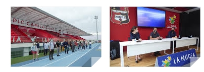 La “visita arquitectónica guiada” ha realizado su primera parada en el “Estadi Olímpic Camilo Cano” de La Nucía, última pieza incorporada a los 400.000 m2 de la Ciutat Esportiva Camilo Cano. El estadio nuciero, con apenas un año de vida, se ha convertido en un referente nacional e internacional, albergando el “Nacional de Atletismo 2019” y siendo sede de los partidos de Primera División del Levante UD en el final de liga 2019-2020.