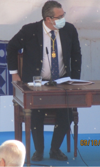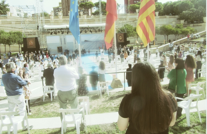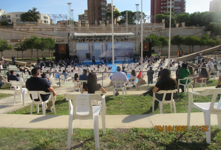 En esta ocasión, y a causa de las especiales circunstancias provocadas por la Covid-19, El Castell, tradicional escenario de los actos institucionales de la ciudad, ha sido sustituido por otro enclave emblemático de la ciudad, el Parque de l’Aigüera. Allí, desde poco antes de las 10 h de la mañana, se han empezado a congregar representantes de los colectivos culturales, vecinales, festeros, sociales y empresariales de la ciudad, de las fuerzas y cuerpos de seguridad, y todos los miembros de la Corporación Municipal. Entre el público, el diputado autonómico, Manuel Pérez Fenoll, y el cónsul honorario de Ecuador, Domingo Gómez Torres.