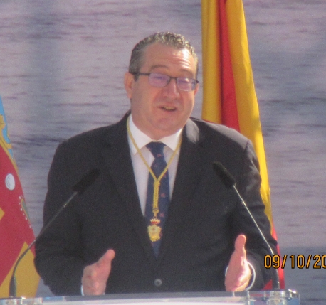 Tras la imposición de la distinción, una insignia con el distintivo ‘9 d’octubre’, diseñada por Miguel Bayona, y la entrega de una reproducción de la fachada del mirador del Castell, obra de José María Morán Berruti, y del agradecimiento público del premiado, el alcalde se ha dirigido al auditorio para pronunciar el tradicional discurso institucional en el que ha loado la trayectoria profesional de Quico y ha valorado la situación que vive la ciudad por culpa de la Covid-19.