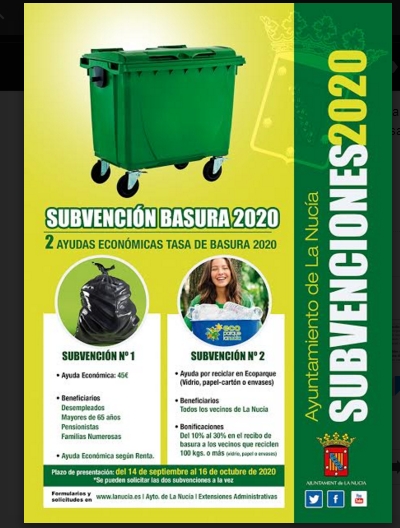 La Nucía.- MAÑANA FINALIZA LAS SUBVENCIONES