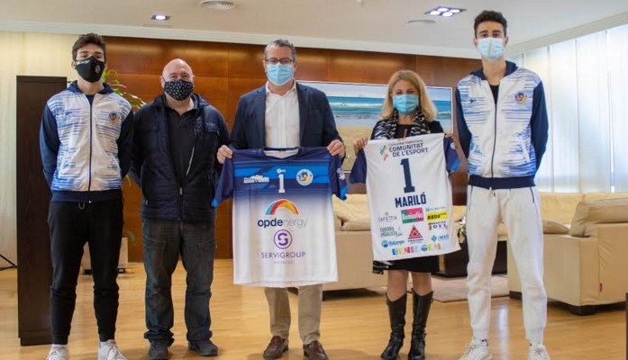 Durante el encuentro, los voleibolistas han entregado a Toni Pérez y a Mariló Cebreros unas camisetas personalizadas del club como con las que compiten en los torneos defendiendo los colores del Playas de Benidorm.