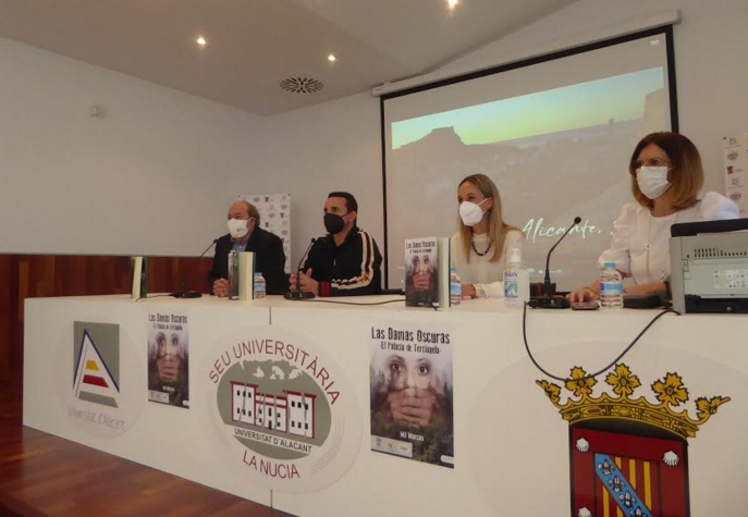 La novela “El Palacio de Terciopelo” de la escritora María José Marcos Fuster se presentó el pasado sábado 19 de diciembre en la Seu Universitària de La Nucía. La periodista alicantina presentó la primera entrega de la saga “Las Damas Oscuras” en La Nucía, en el que analiza “las luces y las sombras del ser humano” a través de la historia de Deby. En el Aula Magna de la Seu se cumplieron los protocolos anti-COVID, limitando el aforo de la sala, para garantizar un “entorno cultural seguro”.