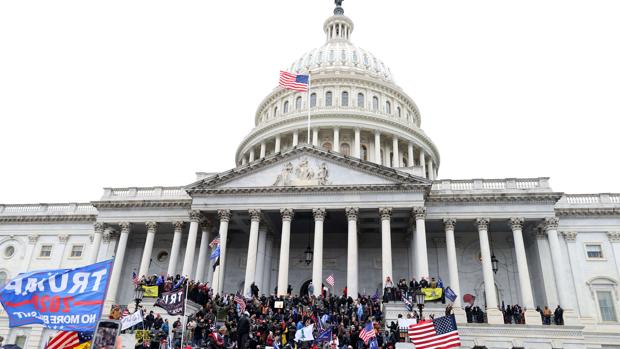 1. Cientos de manifestantes toman el Capitolio jaleados por Trump. Una turba asaltó ayer el Capitolio, enardecida por las denuncias de fraude electoral del presidente Donald Trump, justo momentos después de que su propio vicepresidente, Mike Pence, se negara a rechazar los resultados de las elecciones presidenciales. El Senado fue evacuado, pero la Cámara quedó aislada, con los diputados encerrados dentro, rodeados por una turba armada. Agentes armados tuvieron que proteger a los diputados apuntando sus pistolas hacia los ventanales de la Cámara, mientras los asaltantes trataban de tomarla desde los pasillos de afuera. Los manifestantes habían roto antes los cristales de varias ventanas, e irrumpieron así en el edificio. Después se oyeron varios disparos en el interior del recinto. Uno de ellos alcanzó a una mujer, seguidora de Trump, que falleció posteriormente en el hospital.