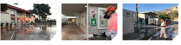 En esta desinfección contra la COVID-19 se actúa en los accesos a los centros educativos, especialmente en las aceras, puertas, timbre, bancos, pasillos de entradas, barandillas, muros, puertas, vallas, papeleras, señales y resto de mobiliario urbano, susceptible de ser tocado por los escolares o sus familiares, en la entrada y salida de los centros escolares.