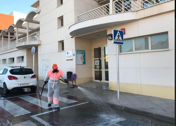 Este mes de enero el Ayuntamiento de La Nucía ha intensificado la limpieza y desinfección de las aceras y entradas de los centros sanitarios del municipio. En esta actuación se desinfectan las aceras, puertas, papeleras, barandillas y pasillos de entrada al Centro de Salud y Consultorio Auxiliar de Pinar de Garaita. Esta desinfección contra la COVID-19 se realiza con agua a presión con hipoclorito y otras sustancias desinfectantes.