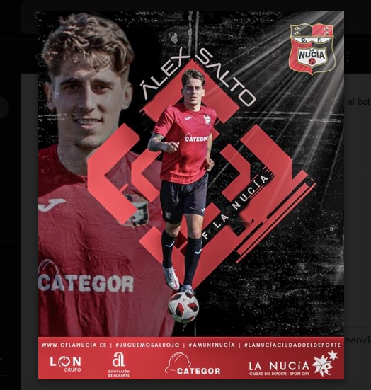 Álex Salto se convierte en el cuarto refuerzo del mercado de enero del Club de Fútbol La Nucía. Anteriormente el club rojillo cerró los fichajes del delantero Mariano Sanz (AFE), el centrocampista Fer Pina (procedente del Mérida AD) y el extremo Aarón Ñíguez (procedente del Málaga de 2ª División). Por el contrario han dejado la disciplina del club Damià, Forte y Juan Antonio.