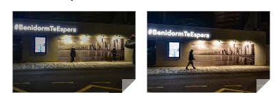 Las imágenes que se exponen en el Espai d’Art Urbà ‘Hispanitat’ proceden del Archivo Histórico Municipal, gestionado por la Concejalía de Patrimonio Histórico que coordina Ana Pellicer. “Son cuatro mupis con retro iluminación led –ha dicho la edil- y un gran panel de seis metros cuadrados, también iluminado, sobre el que podemos leer ese lema promocional, #BenidormTeEspera, que tanto nos une desde que el pasado mes de marzo se lanzara desde el ayuntamiento de Benidorm y con la colaboración y participación de toda la ciudadanía”.