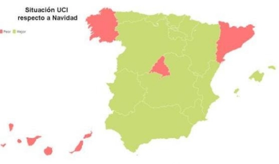 Pese a que la incidencia acumulada de casos y el nivel de ocupación hospitalaria es inferior, el porcentaje de ingresados en UCI es el mismo que antes de la fiestas navideñas