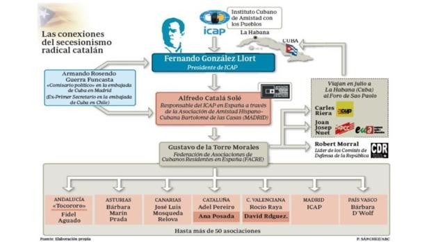 1. El régimen cubano se infiltra en la extrema izquierda española y en los violentos CDR catalanes. Desde hace años el régimen comunista cubano realiza una intensa labor de activismo político e infiltración en la izquierda española, la ultraizquierda y muy especialmente en los grupos violentos independentistas catalanes y vascos, a través de la Federación de Asociaciones de Cubanos Residentes en España (Facre), liderada por Gustavo de la Torre Morales. Las relaciones de este cubano, residente en España desde hace al menos una década, y su mano derecha, Ana Posada Lee –ambos al frente de la Asociación de Cubanos Residentes en Cataluña–, con la CUP, Esquerra Unida i Alternativa (EUiA) y los Comités de Defensa de la República (CDR) son constantes y fluidas. Pero con todo, Gustavo de la Torre no es el hombre fuerte de este activismo, sino simplemente un peón bien colocado.