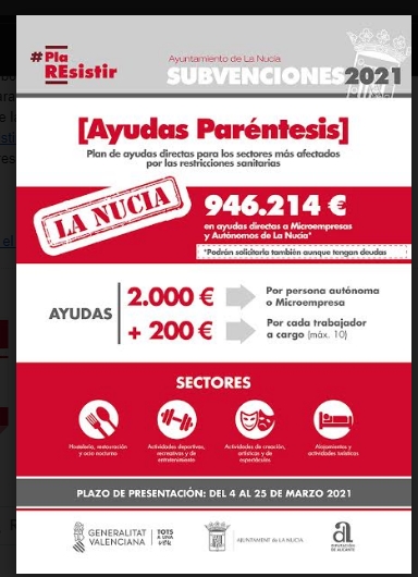 La Nucia.- SUBVENCIONES FINALIZAN EL DIA 25