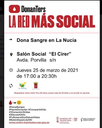 LA Nucía.- MAÑANA DONACIÓN DE SANGRE