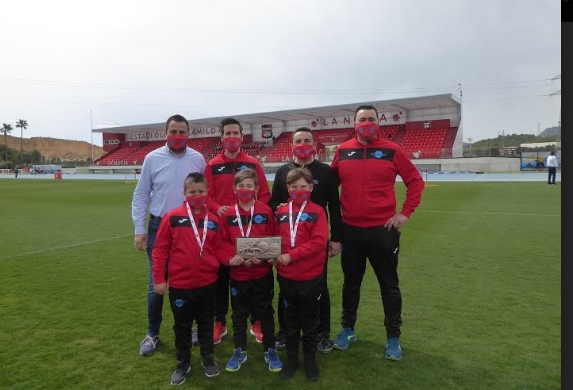 Este reconocimiento a l’Escola de Pilota Valenciana se ha realizado en el Estadi Olímpic Camilo Cano esta mañana. En él Sergio Villalba, concejal de Deportes y Bernabé Cano, alcalde de La Nucía han felicitado a los jóvenes pilotaris Carlos Saez, Jordi Ripoll y Hugo Montenegro, tras su cuarto puesto en la final provincial de “Frontó per Parelles” benjamín JECV, el pasado domingo en Beniarbeig. También han estado presentes su entrenador el pilotari profesional Pere Roc II y Juan Vicente Berenguer, pte. Club Pilota Valenciana de La Nucía.