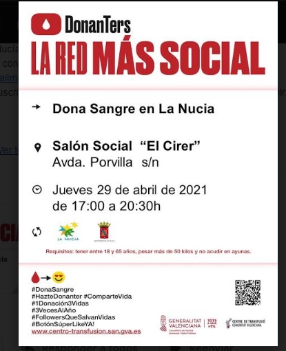 La Nucia.- ESTA TARDE NUEVA DONACIÓN DE SANGRE
