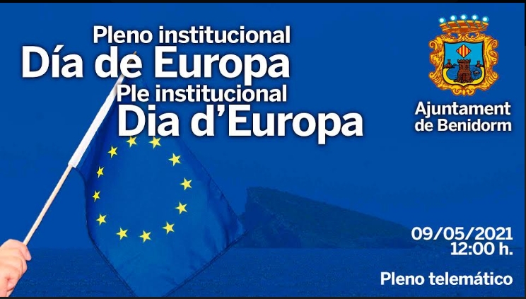 El Ayuntamiento de Benidorm conmemorará el próximo domingo, 9 de mayo, el Día de Europa, con la celebración de un pleno extraordinario institucional a las 12.00 horas, convocado por vía telemática, a causa del estado de alarma provocado por la situación sanitaria.