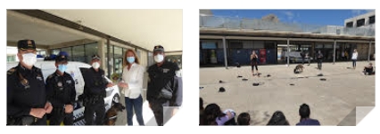La actividad se dividía en dos bloques de 25 minutos. En el primer bloque la Policía Local de La Nucía mostraba la máquina de control de estupefacientes, que cuentan los coches patrulla, así como los test, actas y consecuencias de multas, tanto como peatón como en un conductor.
