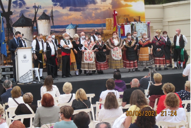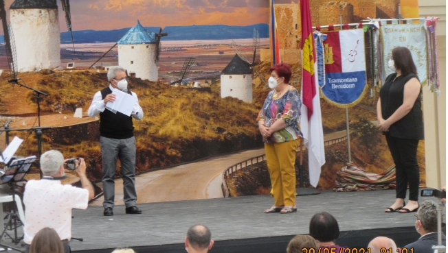 El singular actor de conmemoración de la celebración del Dia de Castilla-La Mancha tuvo lugar en el Auditorio Óscar Esplá en donde se congrego cerca de 300 manchegos-benidormenses, con el alcalde local al frente, para su celebración. El pasado año por culpa de COVID19 no pudo celebrarse y este año, aunque con las medidas sanitaria en curso, y con menos personal, se ha celebrado con el éxito y sana alegría manchega.
