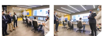 Tras el acto, los alcaldes y el secretario de Turismo conocieron en detalle algunas de las actuaciones más significativas del Grupo Suez y de Hidraqua desde el Dinapsis Operation & Lab de Benidorm a través de las explicaciones del Responsable de Innovación del Grupo Suez, Antonio Sánchez, y de la directora de operaciones de Hidraqua, María José Toledo.