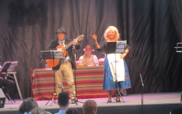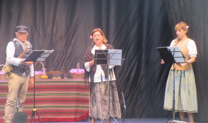 El grupo de teatro de la ACB y la rondalla y cuerpo de baile de Tramontana, dirigidos todos por Manuel Palazón, escenificaron ayer, en el auditorio Óscar Esplà la conocida zarzuela “La rosa del azafrán”, con libreto de Federico Romero y Guillermo Fernández-Shaw y música de Jacinto Guerrero. El argumento está basado en “El perro del hortelano”, de Lope de Vega, que no come ni deja comer; en este caso, se refiere al ama Sagrario con respecto a un labrador ennoviado con una criada.
