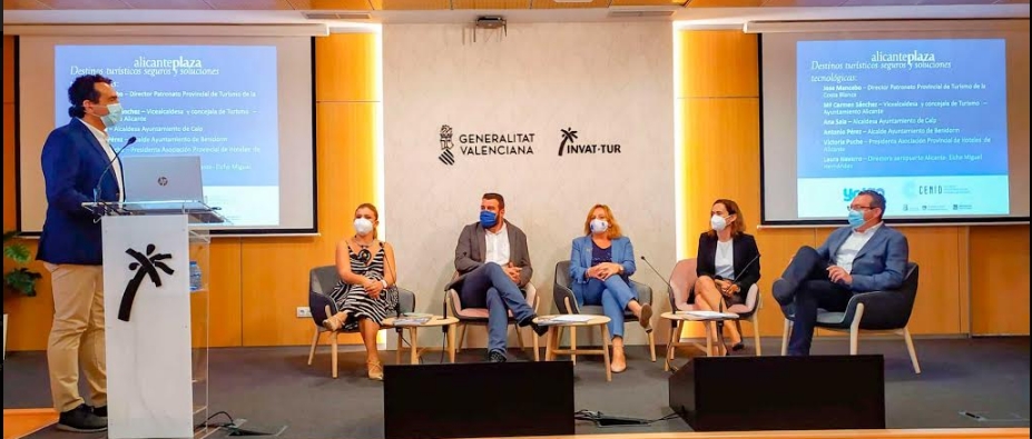 El alcalde de Benidorm ha participado esta mañana en el foro Destinos Turísticos Seguros y soluciones tecnológicas que ha organizado el Grupo Plaza, con el patrocinio del Centro de Inteligencia Digital de la Provincia de Alicante, CNID, y el operador Yoigo, El presidente de la Diputación, Carlos Mazón, y el Secretario autonómico de Turismo, Francesc Colomer abrieron el foro que en dos mesas –tecnología y destinos turísticos seguros-, analizó la situación.