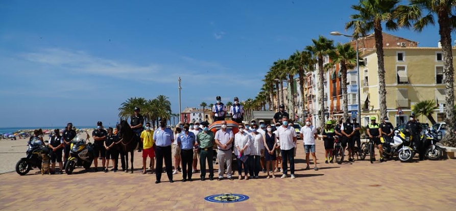 El acto de presentación del dispositivo de seguridad policial y socorrismo contó con la presencia de Andreu Verdú, Alcalde de la Vila Joiosa, Isabel Perona, edil de Seguridad Ciudadana y Tráfico, y José Álvarez, Intendente Jefe de la Policía Local, que estuvieron acompañados de otras autoridades de la Corporación municipal y efectivos de los cuerpos de seguridad y socorrismo del operativo especial de playas.