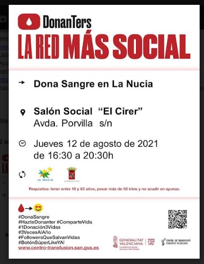 La Nucía.- HOY DONACIÓN DE SANGRE EN «EL CIRER»