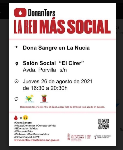 La Nucía.- EL JUEVES NUEVA DONACIÓN DE SANGRE