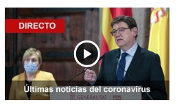 09:15La Generalitat Valenciana aprueba este lunes la desescalada de las restricciones por el coronavirusLas nuevas limitaciones por el Covid-19 iniciarán una «reapertura prudente» y se mantendrán hasta el mes de octubre. [Lea aquí la noticia completa]