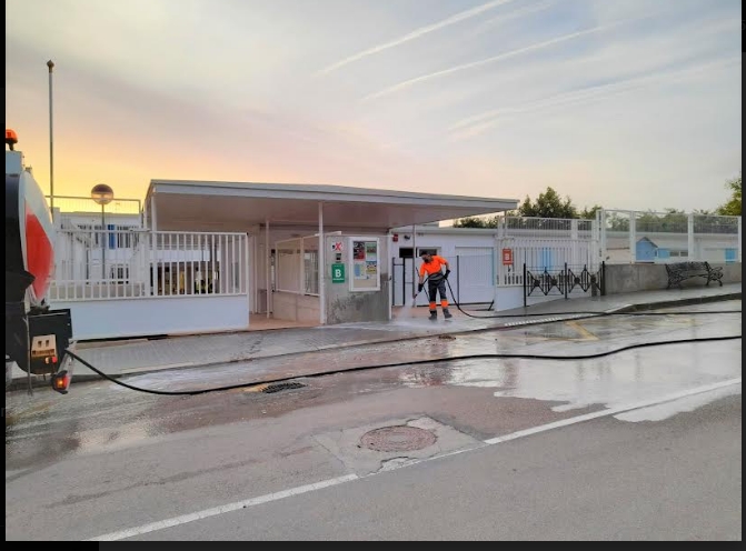 Esta semana se ha actuado a fondo en los patios, zonas infantiles, mobiliario urbano, aceras y accesos de los centros educativos: Instituto La Nucía, Colegio Muixara y Colegio Sant Rafel. La barredera recoge primero los restos de poda y suciedad de los patios y después se realiza el baldeo con agua con hipoclorito de los espacios exteriores y mobiliario urbano de los centros educativos. A su vez se está actuando a fondo en los accesos de los colegios e instituto: puertas, aceras, timbre, bancos, pasillos de entrada, muros, pasamanos….etc.