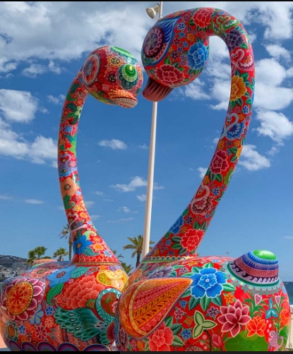 ‘Galaxia Hung’ aterrizó en Benidorm el 16 de abril procedente de la Ciudad de las Artes y las Ciencias de Valencia. Las catorce esculturas de animales de gran tamaño y variado colorido, han llamado la atención del público y las han convertido en iconos de este verano en Benidorm.