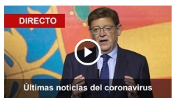 10:00Nuevas restricciones por el coronavirus para la próxima semanaEl martes 28 de septiembre entran en vigor las nuevas medidas decretadas por la Generalitat Valenciana anunciadas por Ximo Puig. [Lea aquí la noticia completa]