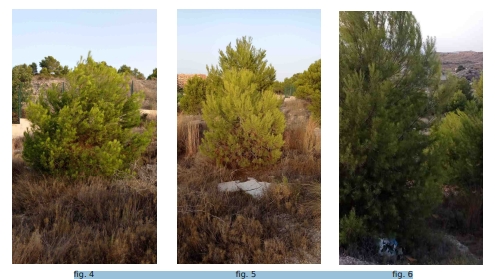 pinos (fig. 4) con presencia de escombros (fig. 5) y basura (fig. 6), con tubos de