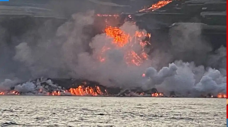 Comienza a formarse un delta de lava que poco a poco va ganando terreno al mar. El proceso continuará hasta que el flujo de lava se mantenga.