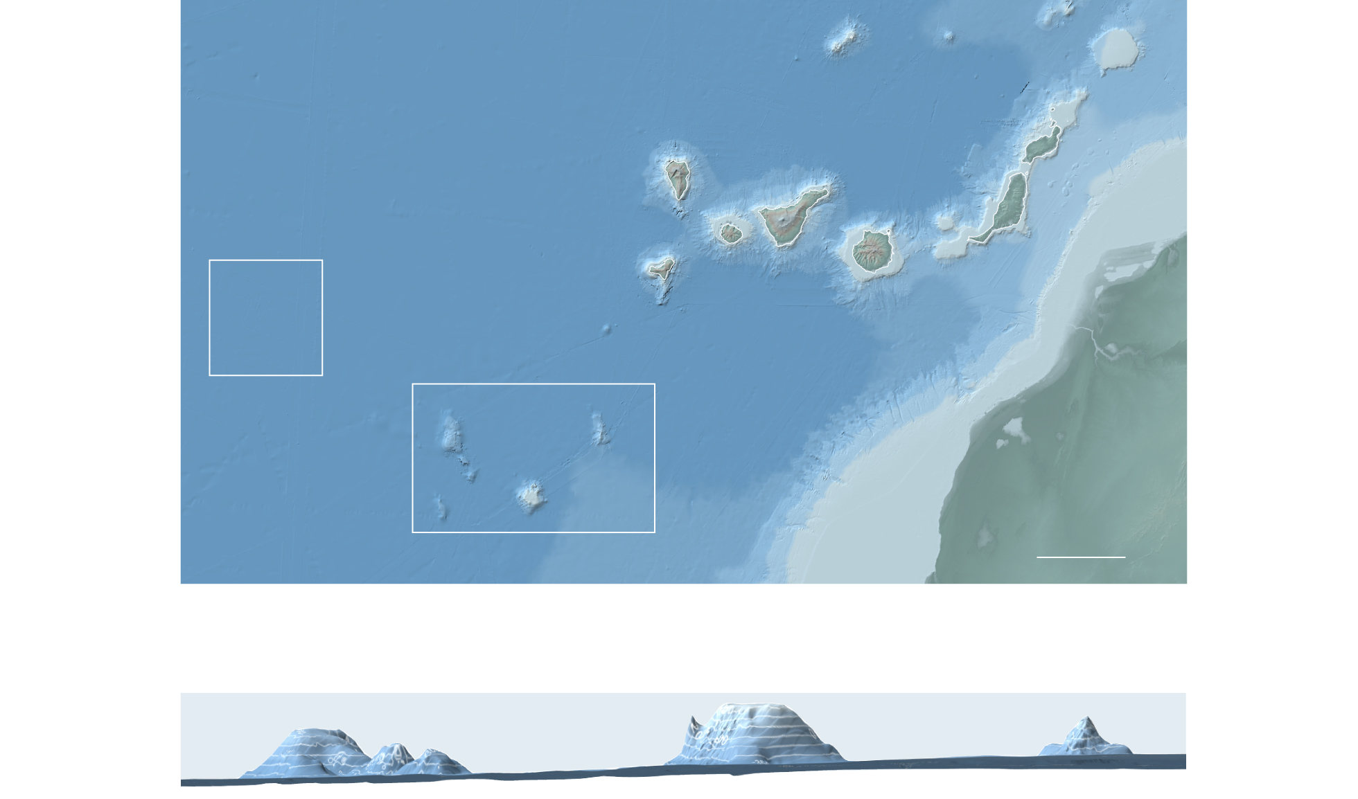 Muchas de estas islas sumergidas fueron descubiertas hace apenas unos años por el equipo de Somoza. La forma de alguna de ellas es casi idéntica a las Canarias actuales, como si fueran un ensayo previo, “unas precanarias”, explica el geólogo del IGME.