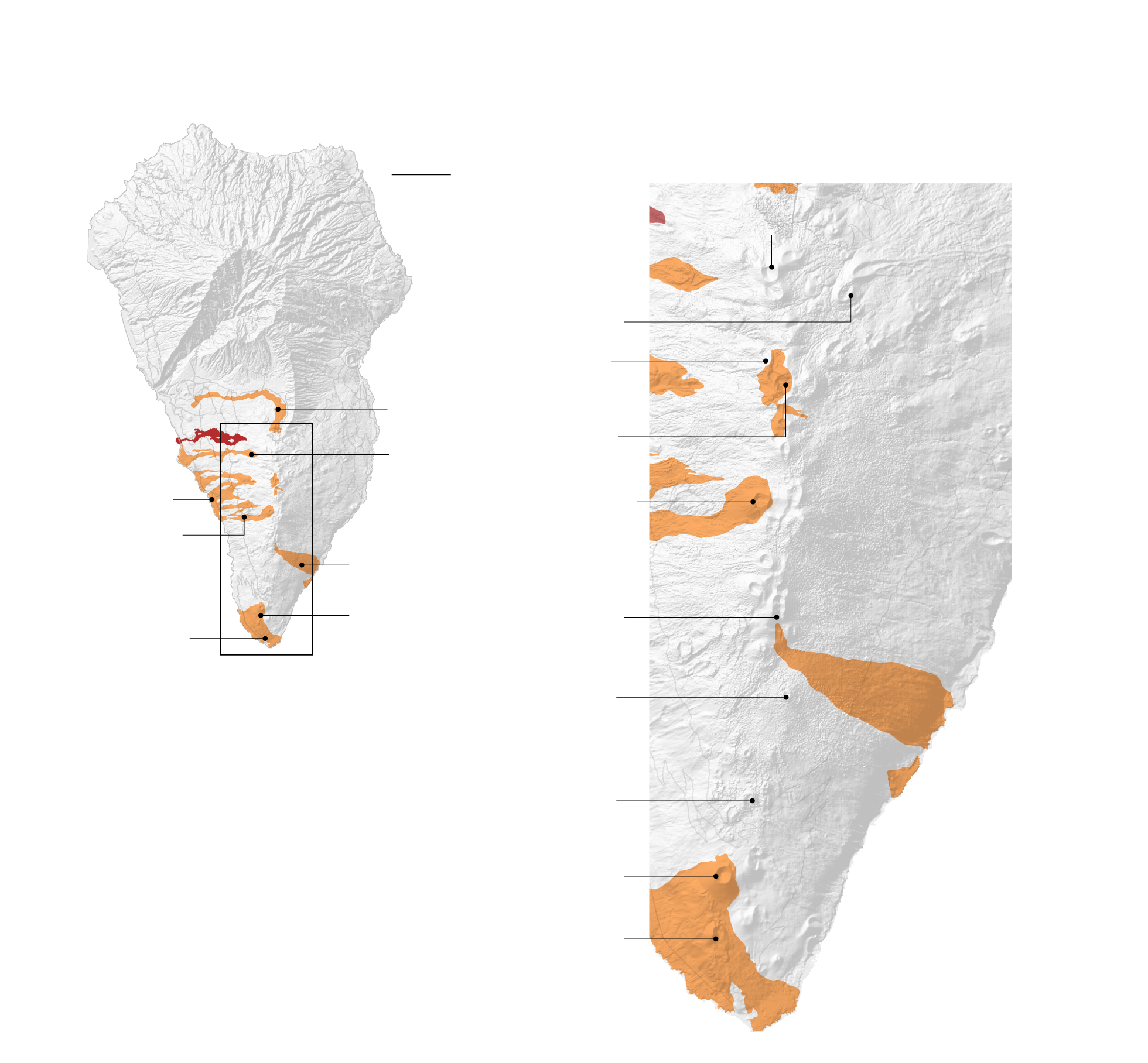 Fuentes: Roberto Rodríguez, editor de las guías geológicas de los Parques Nacionales del Instituto Geológico y Minero, sistema de satélites Copernicus, Cabildo Insular de La Palma, Instituto Geológico y Minero, Bing Maps, ‘Canarias: islas volcánicas intraplaca’ (Geo-Guías) y Science Direct (‘The geology of La Palma’).