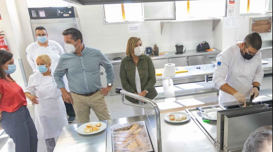 La concejal de Bienestar Social, Ángela Llorca, ha cursado esta mañana una visita a las instalaciones del CdT y ha seguido a los alumnos en la preparación de algunos de los platos de referencia del curso. La edil ha estado acompañada a lo largo del recorrido por el Director General de Turismo de la Generalitat, Herick Campos; el director del CdT, Francisco Juan Martínez; la directora del CEEM-CRIS de Benidorm, Raquel Martínez; y la coordinadora del CRIS Centro de Día, Josefina Ballesteros.