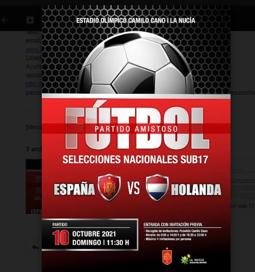 El domingo 10 de octubre a las 11,30 horas en el Estadi Olímpic de La Nucía la selección española sub 17 se enfrentará a la selección de Holanda.
