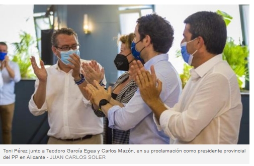 El presidente del PP en la provincia de Alicante, Toni Pérez, se ha mostrado confiado en «el cambio para que Alicante tenga capacidad de influencia en un proyecto único cohesionado, vertebrado, sin rupturas como ahora en el seno de la Comunidad Valenciana» con el ascenso de Carlos Mazón a la Generalitat.