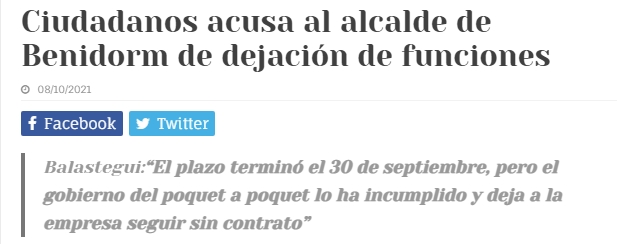 «CIUDADANOS» Acusa al alcalde de Benidorm de dejación de funciones