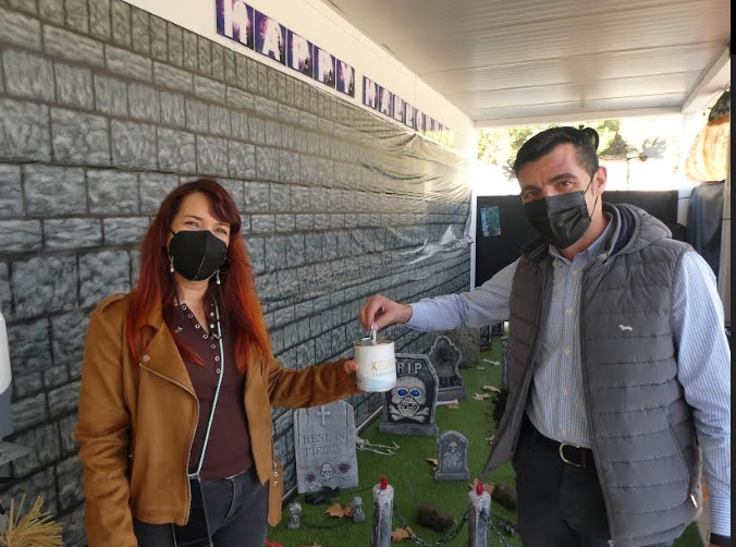 Esta mañana en el inicio de las puertas abiertas de la “Casa del Terror” para las familias de la Muixara, Miguel Ángel Ivorra, concejal de Urbanismo, ha visitado la decoración junto a Silvia Ripoll, directora del centro. El edil nuciero ha colaborado en el “Halloween solidario” para recoger fondos para Aspanión y ha felicitado al centro educativo por la fantástica decoración de 2021 y por la iniciativa solidaria.