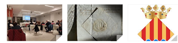 . Ayer por la tarde pudimos asistir a una magnífica lección sobre heráldica medieval valenciana en la Sede Universitaria. El doctor en Literatura Catalana e Historia, Abel Soler Molina, partiendo en su exposición de la tradición heráldica europea nos acercó a los signos y señales heráldicas de los principales linajes y ciudades de la antigua corona de Aragón, destacando entre todos ellos, el propio de los monarcas, caracterizado por los palos de gules (rojos) sobre campo (fondo) de oro, base sobre la que se configurarán los sellos y escudos de las villas reales, muchos de ellos a partir de la forma “caironada” (cuadrado girado sobre sus puntas, a modo de rombo) que adoptó la ciudad de València en el siglo XIV, durante el reinado de Pere el Cerimoniós.