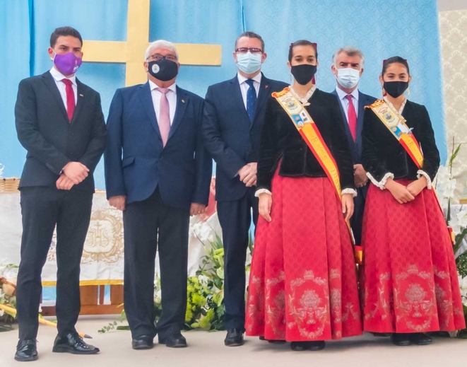 Además de las reinas, al acto religioso han asistido el alcalde, Toni Pérez, y el concejal de Fiestas, Jesús Carrobles, miembros de la corporación municipal y el diputado autonómico, Manuel Pérez Fenoll. En representación de la Comissió de les Festes Majors Patronals, su presidente Batiste Rostoll y su presidente a perpetuidad, Francisco Llorens ‘Paco Rosera’. También el de la Associació de Penyes ‘Verge del Sofratge’, Adrián Romero; el abanderado, Vicente Fuster, y representantes de los colectivos sociales y festeros de la ciudad. En total, han asistido a la ceremonia poco menos de medio millar de personas.