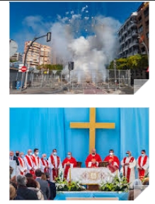 Más tarde, a las 14.00 h, en la avenida de Jaume I, Paula Pérez y Sofía Fuster, pulsaron el botón de inicio de la segunda de las ‘mascletaes’ de estas FMP2021, a cargo de la pirotecnia Hermanos Sirvent de Alicante. Un potente espectáculo pirotécnico que ha consumido 94 kilos de pólvora en aproximadamente seis minutos y que han alcanzado la cumbre tras dibujar la bandera española bajo el cielo azul de Benidorm.