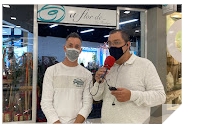 Hervé Blais para Nexa FM, en una entrevista en directo durante la inauguración del local.