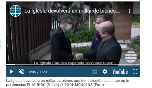 El resultado de este análisis realizado por la Iglesia es que se ha revelado que al menos hay un millar de bienes que «pertenecen a un tercero» o que a la Iglesia «no le consta la titularidad sobre el mismo». Es sobre esas propiedades sobre los que se abre ahora el proceso de reclamación.Más en El MundoLos sapos que se tragó la Infanta Cristina por Iñaki Urdangarin, su príncipe «ojos azules»La Infanta Cristina e Iñaki Urdangarin deciden «interrumpir su relación matrimonial»